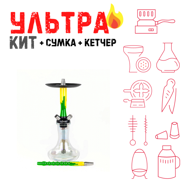Купите Набор с кальяном Mamay Customs Flow зеленый желтый (24 см) ВСЕ ВКЛЮЧЕНО по цене 23 270 руб. с доставкой в Нарьян-Мар от сети кальянных магазинов ИванКальян.РУ.