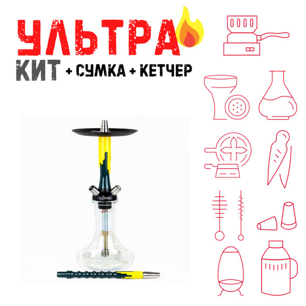 Купите Набор с кальяном Mamay Customs Flow морская волна желтый (24 см) ВСЕ ВКЛЮЧЕНО по цене 23 270 руб. с доставкой в Нарьян-Мар от сети кальянных магазинов ИванКальян.РУ.