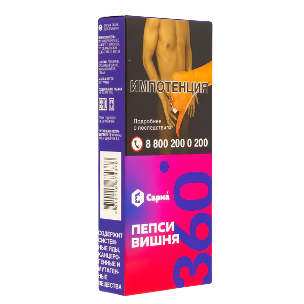 Купите Табак Сарма 360 Лёгкая Пепси-Вишня 40 грамм по цене 359 руб. с доставкой в Нарьян-Мар от сети кальянных магазинов ИванКальян.РУ.