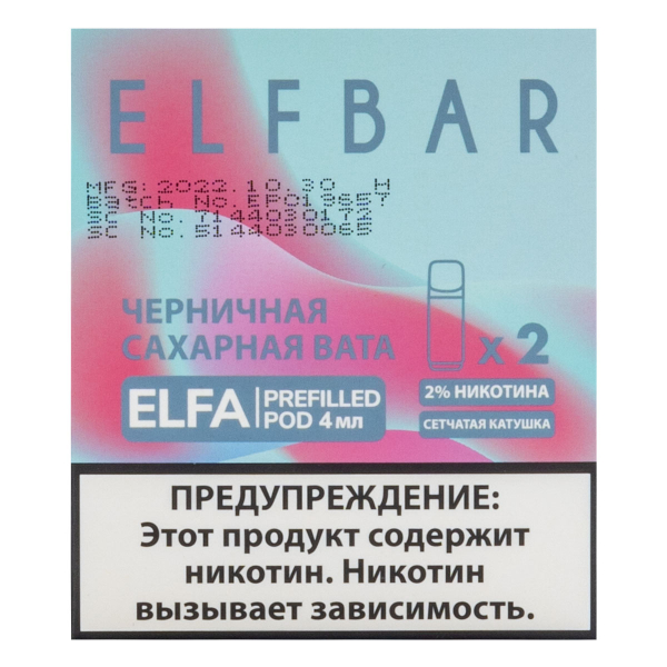 Купите Картридж Elfbar X2 Elfa 20 Мг 4 Мл Черничная Сахарная Вата по цене 1 490 руб. с доставкой в Нарьян-Мар от сети кальянных магазинов ИванКальян.РУ.